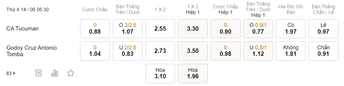 Tỉ lệ kèo Atletico Tucuman vs Godoy Cruz