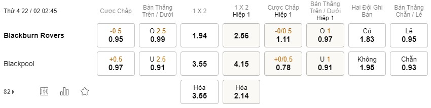 Soi kèo hiệp 1 Blackburn vs Blackpool: 1.11*0/0.5*0.78