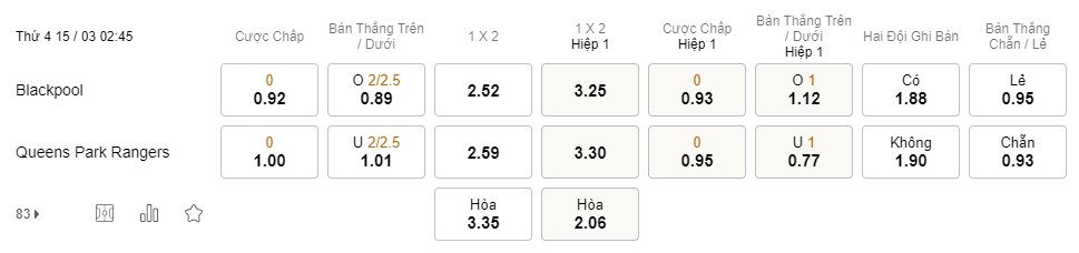 Soi kèo hiệp 1 Blackpool vs QPR: 0.93*0*0.95