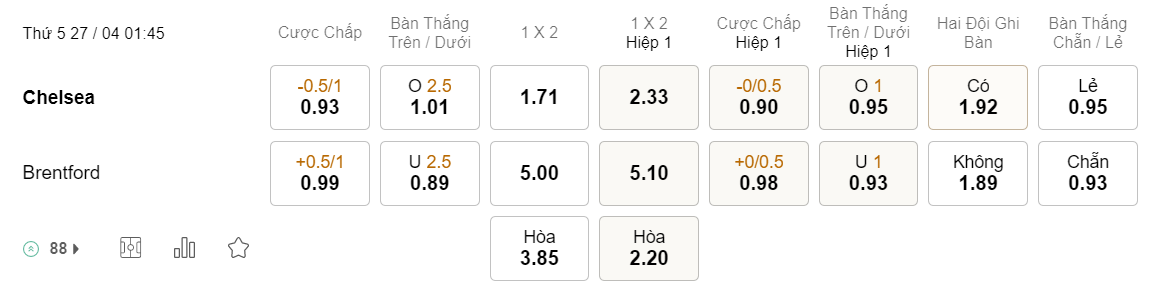 Soi kèo châu Á Chelsea vs Brentford: 0.93*0.5/1*0.99