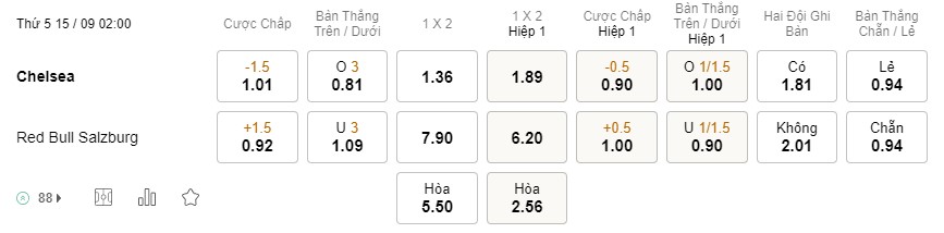 Soi kèo châu Á Chelsea vs Salzburg: 1.01*1.5*0.92
