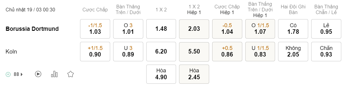 Trong khi đó nhìn sang đội khách, Cologne đã trải qua chuỗi 4 trận liên tiếp toàn hòa và thua. Vì vậy các chuyên gia nhận định, lựa chọn Dortmund trong trận đấu này vẫn sẽ là chính xác hơn.