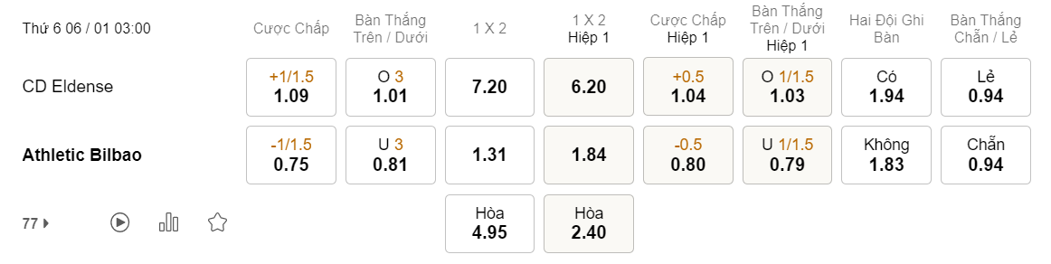 Soi kèo tài xỉu Eldense vs Bilbao: 1.01*3*0.81