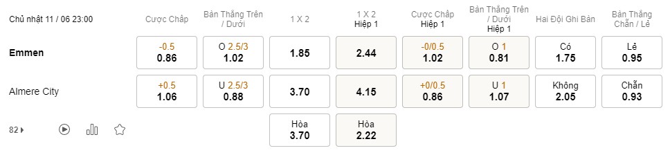 Soi kèo hiệp 1 Emmen vs Almere City: 1.02*0/0.5*0.86