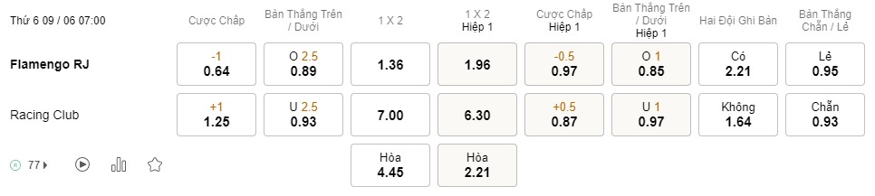 Soi kèo châu Á Flamengo vs Racing Club: 0.64*1*1.25