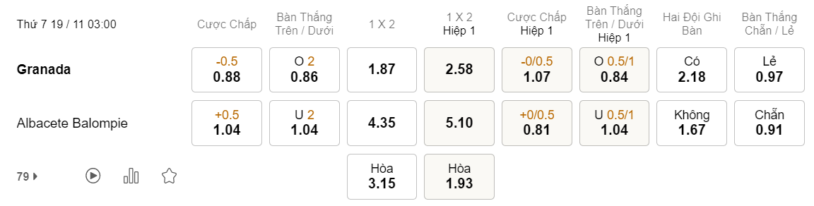 Soi kèo hiệp 1 Granada vs Albacete: 1.07*0/0.5*0.81