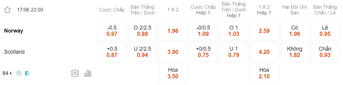 Soi kèo tài xỉu Na Uy vs Scotland: 0.88*2/2.5*0.94