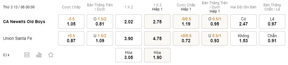 Soi kèo châu Á Newell’s Old Boys vs Union: 1.05*0.5*0.87
