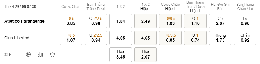 Soi kèo hiệp 1 Paranaense vs Libertad: 1.03*0/0.5*0.85