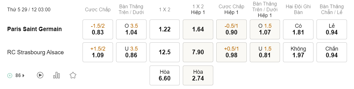 Soi kèo tài xỉu PSG vs Strasbourg: 1.04*3.5*0.86