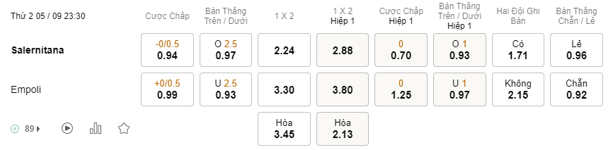 Soi kèo châu Á Salernitana vs Empoli: 0.94*0/0.5*0.99